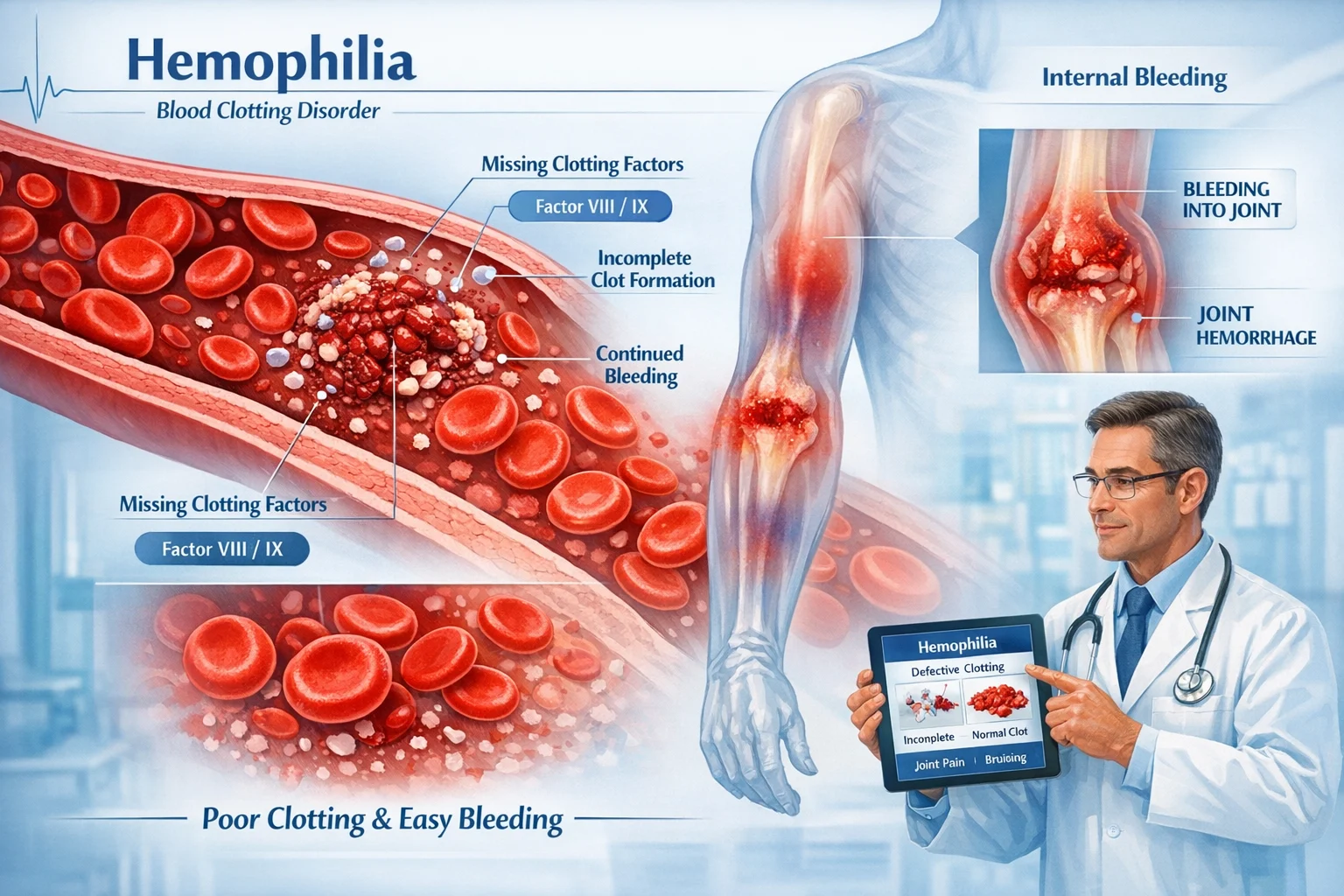 What is Hemophilia? Hemophilia is a rare inherited bleeding disorder where the blood does not clot properly. This happens because the body lacks enough clotting factors—proteins that help stop bleeding. As a result, even minor injuries can lead to prolonged bleeding, and in severe cases, internal bleeding can occur without any visible cause. Hemophilia is […]